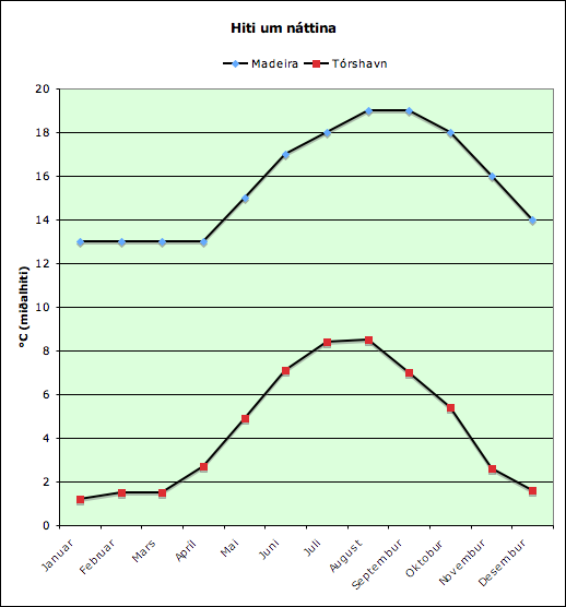 Føroyar liggja í Norðuratlantshavi, meðan Madeira liggur munandi longur suðuri, men eisini í Atlantshavi. Hvørjir eru munirnir av tí ymisku...